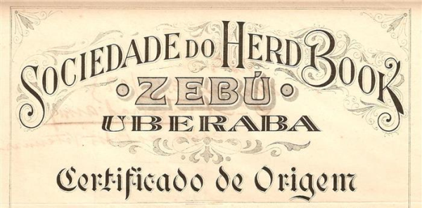 Parte de um facsímile do primeiro Certificado de Origem a um zebu no Brasil.