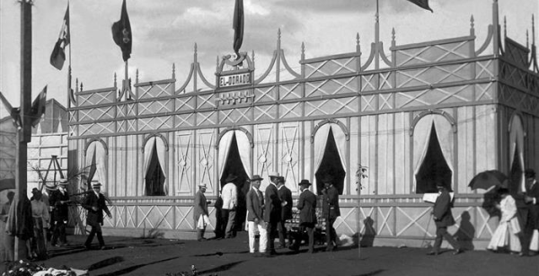 Um dos pavilhões exibidos na primeira feira de exposição a apresentar animais zebuínos em Uberaba, em 03 de maio de 1911.